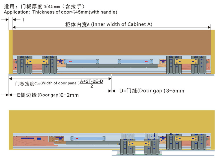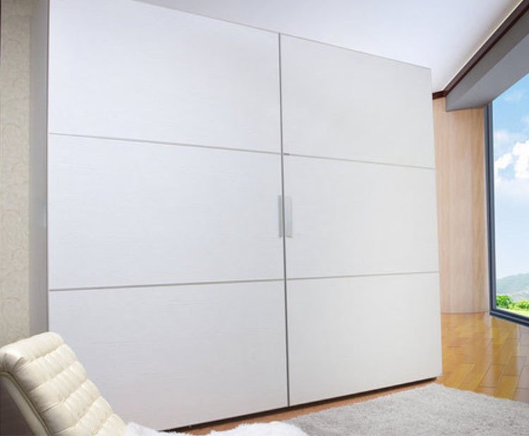 衣柜巴士門平時看上去是兩張門板沒有其他累贅的軌道邊框外露,甚至兩塊門板在同一平面,拉開任意一扇門的時候