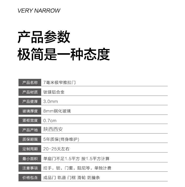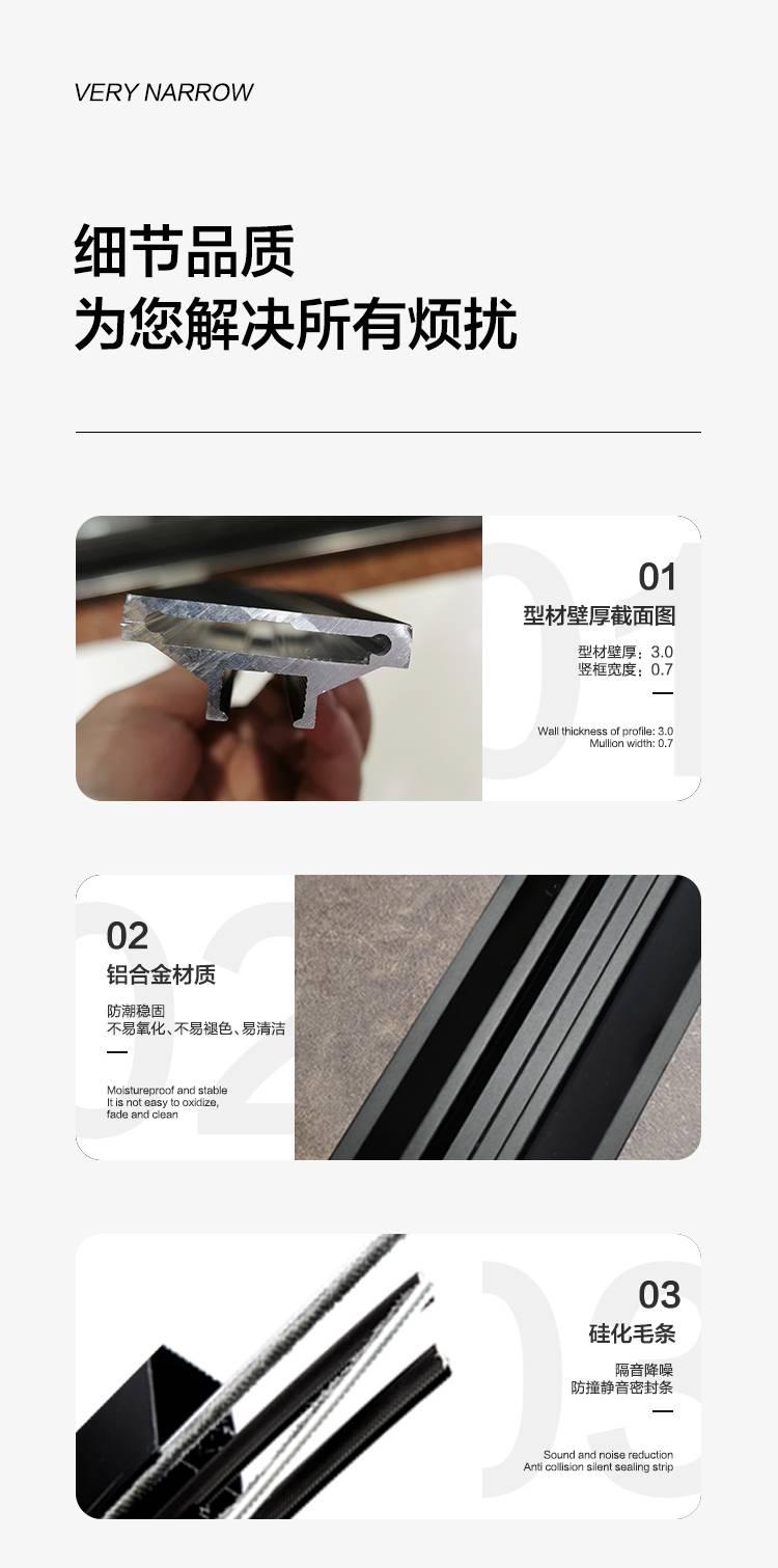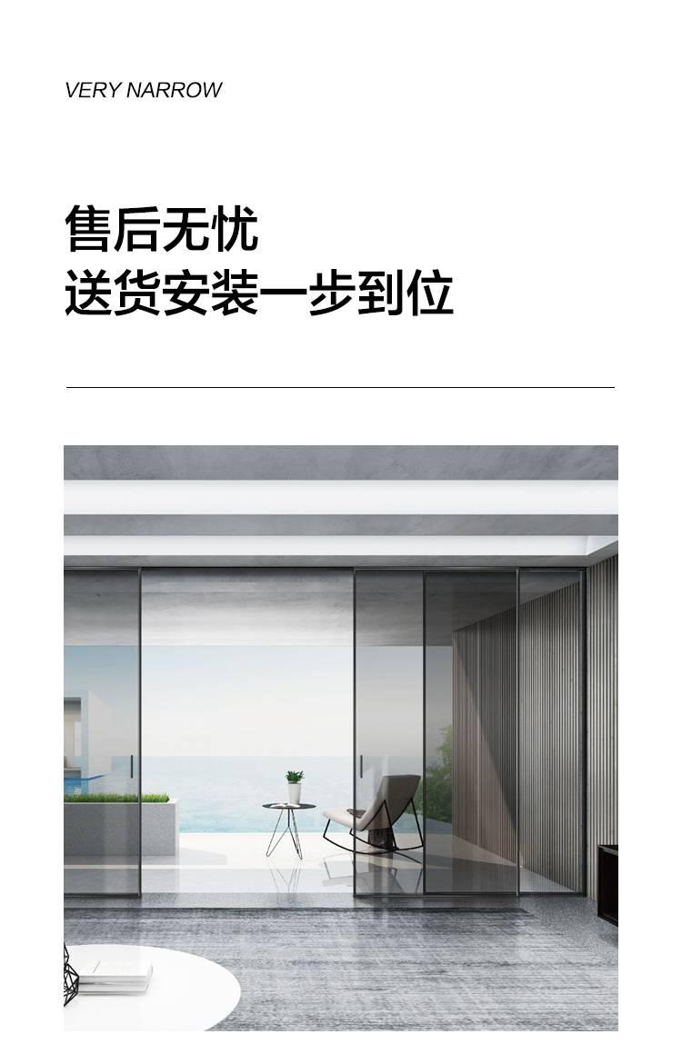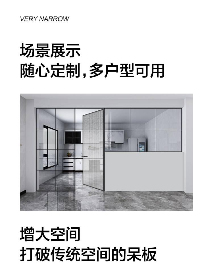玻璃極簡門,極簡,優雅!門的至簡絕不是“少”,而是去除“多余”。簡約,是一種追求完美的境界。玻璃極簡門,集時尚、簡約、精粹于一身。極端狹長的框架結構和玻璃的完美結合讓光線自由充足的滲透進整個室內去繁從簡,精心設計簡潔,但又不失典雅的純真,但不失意蘊,而不忘初心。