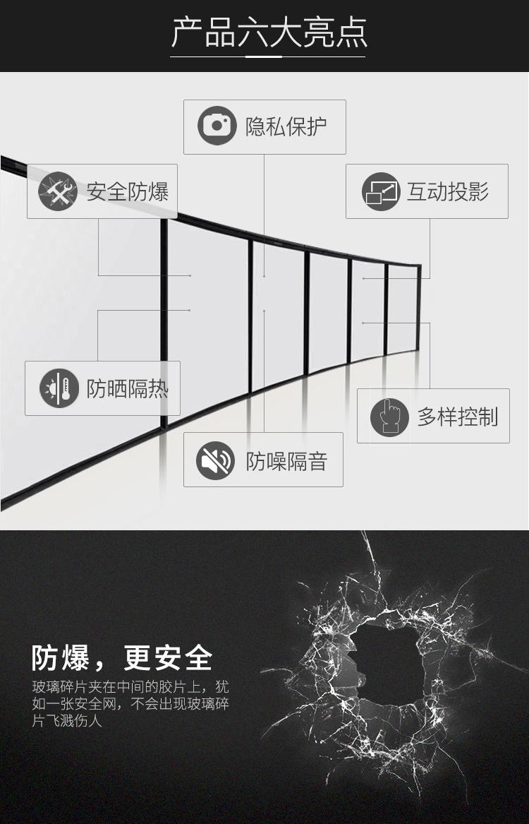 本款電動折疊隔斷,門扇邊可以加裝人體存在傳感器,或門磁開關來實現防撞的保護。當其中任意一片門扇受阻,其排在后面的門扇將停止運行,待移除障礙后會自動運行。折疊隔斷具備斷電保護功能,當遇到意外斷電時,系統會保持并記憶斷電時系統中每片門扇的位置,當再次通電時系統會自動執行未完成的工作。觸摸開關,可控制門扇全自動移出、收藏、固定密封等操作指令。手機或平板電腦可遠程可控制門扇全自動移出、收藏、固定密封等操作指