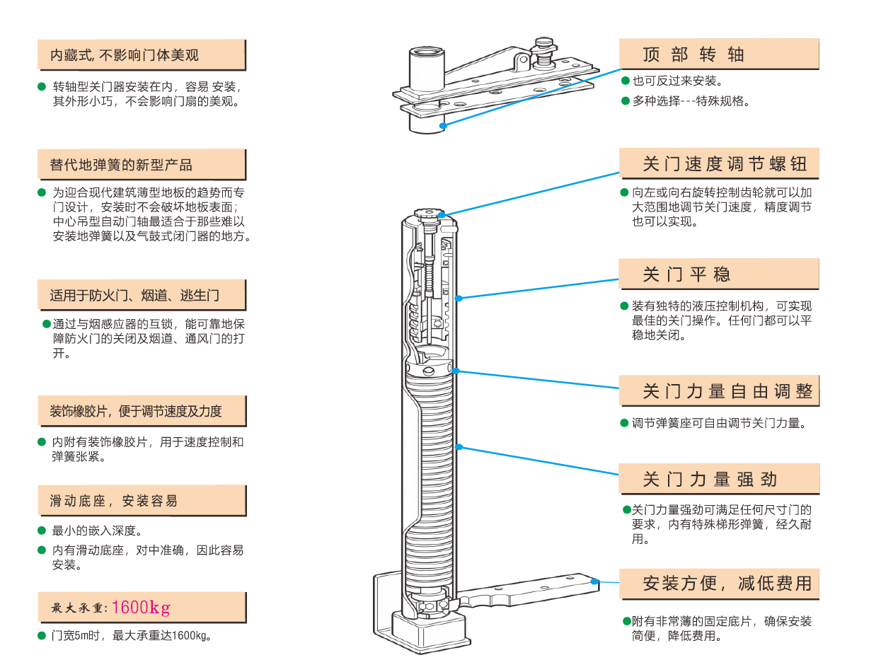這是我公司可單獨(dú)售賣的五金器件,中心吊型自動(dòng)鉸鏈可用于多種環(huán)境,打造的中心旋轉(zhuǎn)門非常輕便,無論是通電還